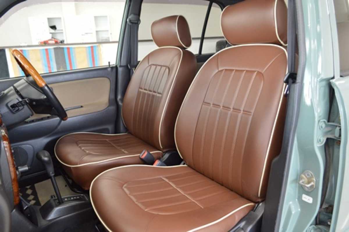 カスタムペイント・ホワイトルーフ・ブラウンレザー調シートカバー・メッキホイールキャップ
