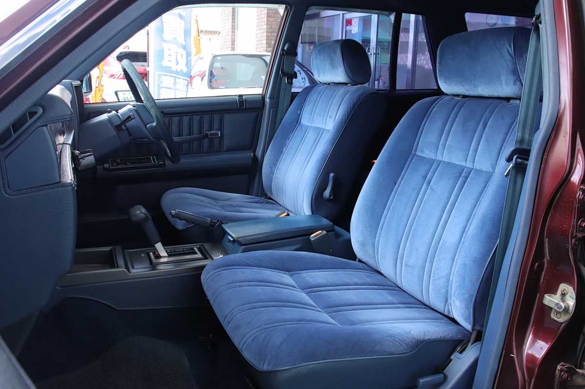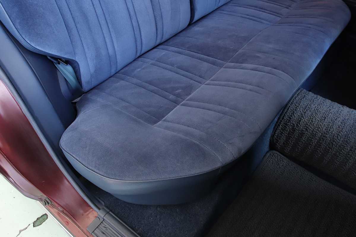 ベンチシート 前席シートが完全には独立しておらず、長椅子状につながって見える構造になっています。