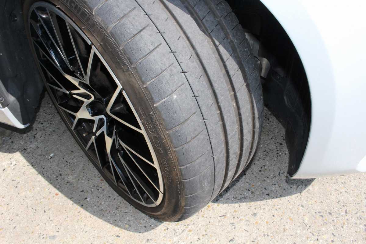 純正アルミ メーカーで販売しているアルミホイールが装着されています。