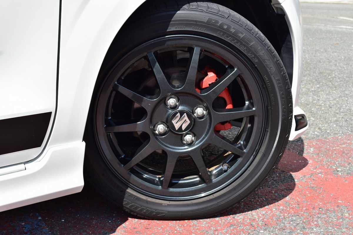 純正アルミ メーカーで販売しているアルミホイールが装着されています。