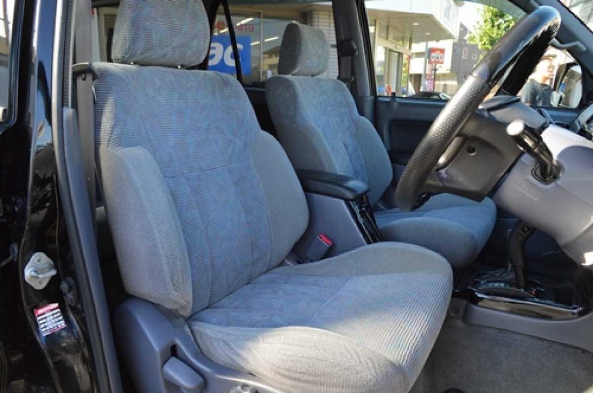 ベンチシート 前席シートが完全には独立しておらず、長椅子状につながって見える構造になっています。