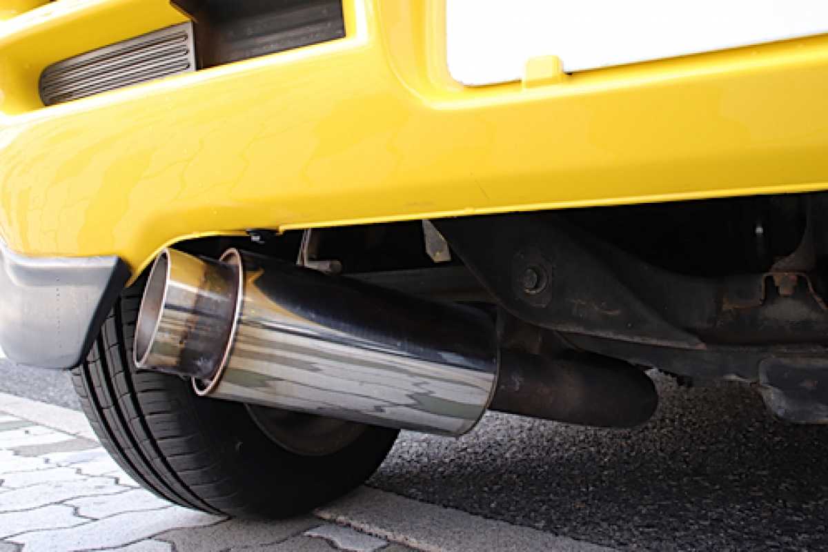マフラー 排気音を小さくするための消音器が装着されています。