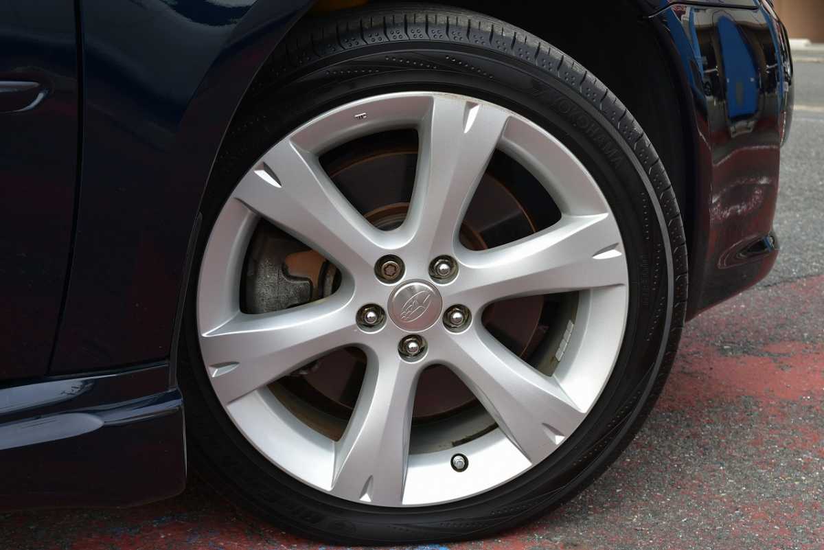 純正アルミ メーカーで販売しているアルミホイールが装着されています。