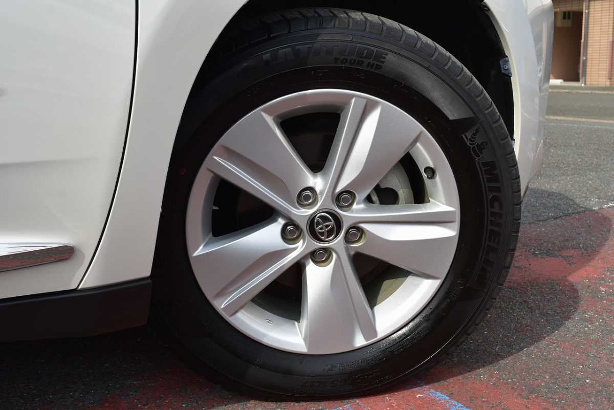 純正アルミ メーカーで販売しているアルミホイールが装着されています。