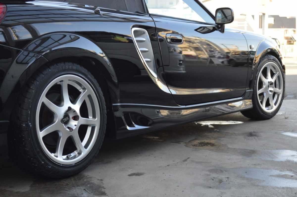 フルエアロ フロントスポイラー、リアスポイラー、サイドステップというエアロパーツ3点が揃って装備されています。