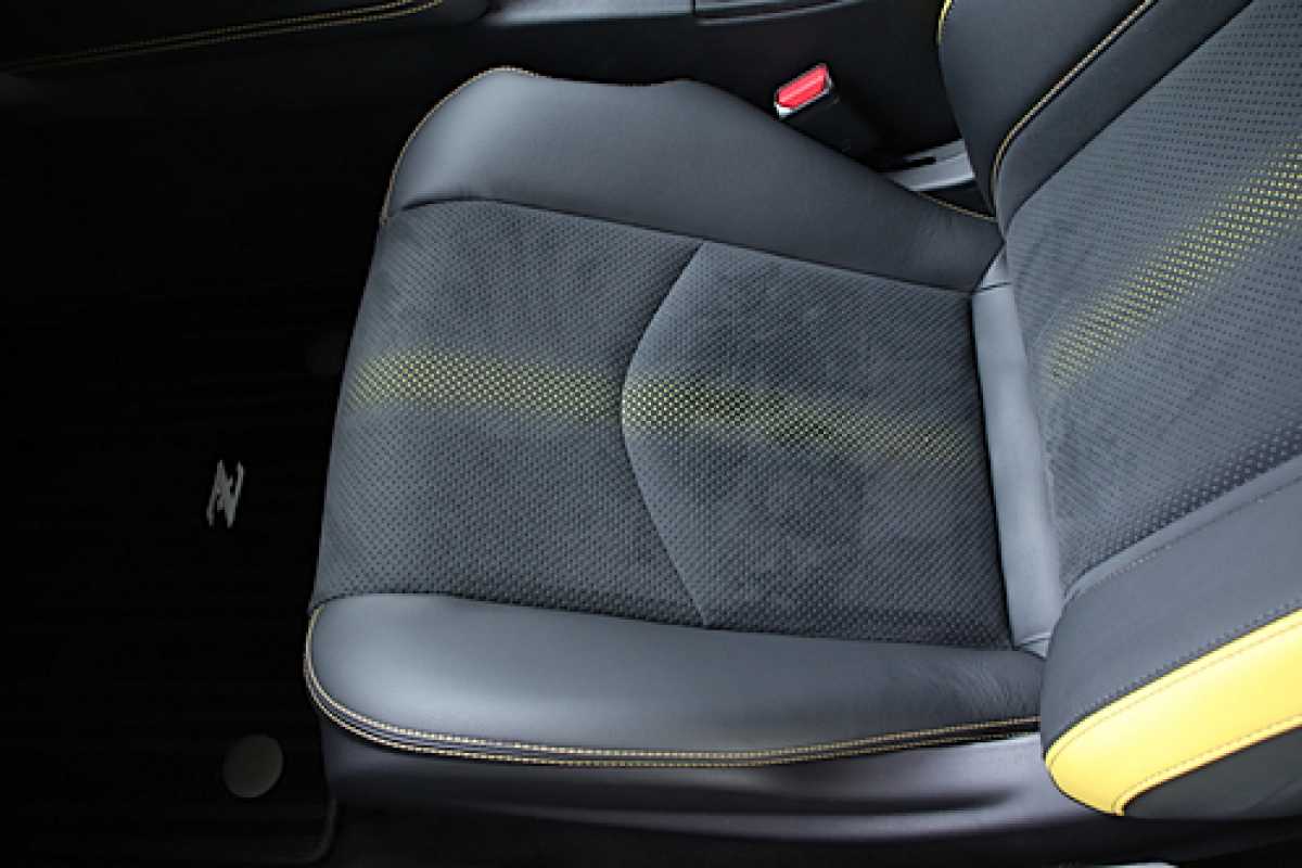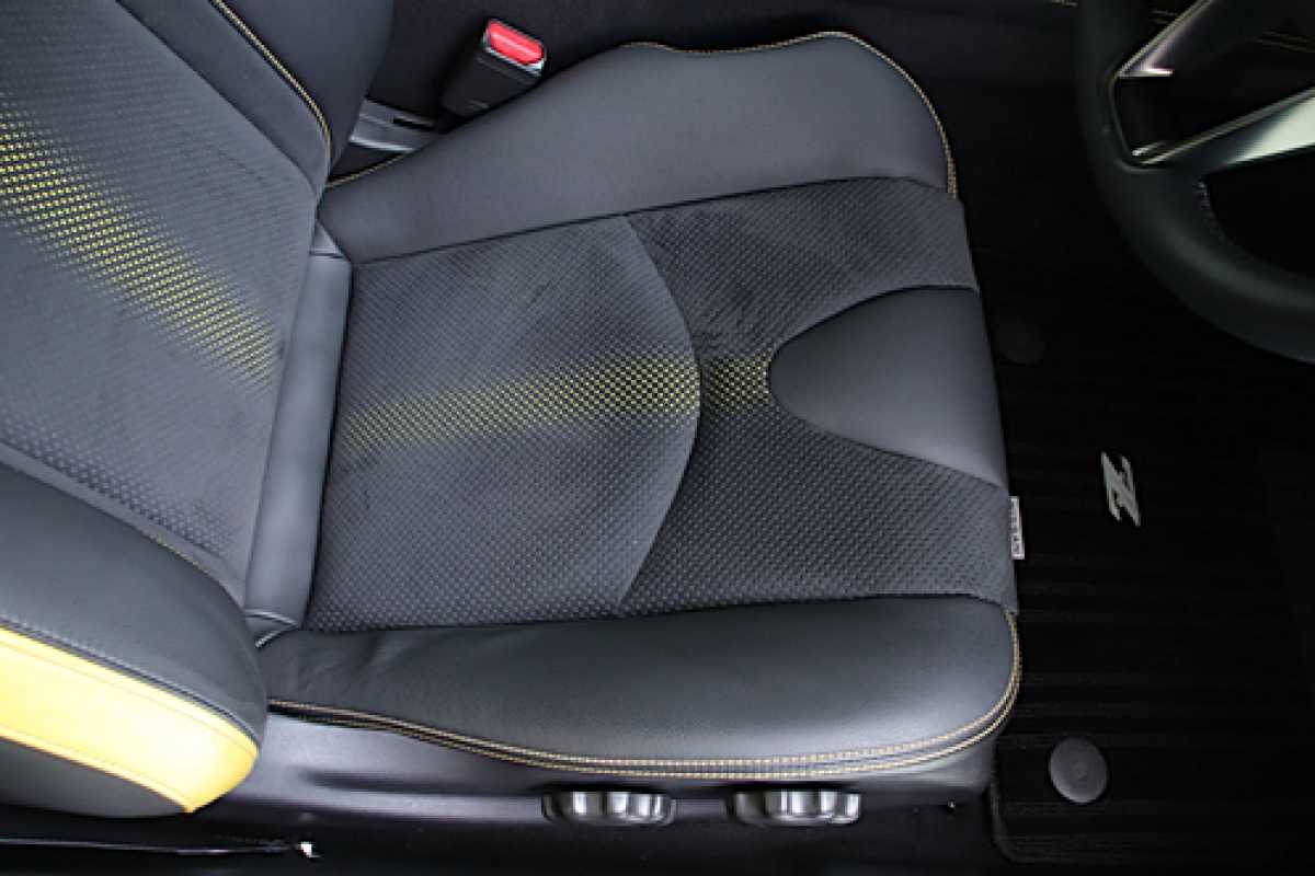 ハーフレザー シートの一部分が革張りになっています。
