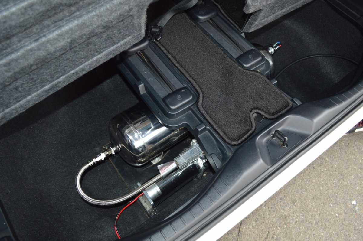 エアサスペンション 走行中の振動を吸収するサスペンションに、金属スプリングの代わりに圧縮空気を採用したものが装備されています。
