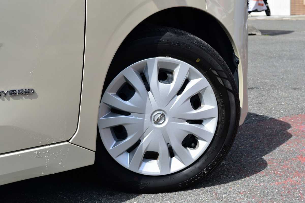 純正アルミ メーカーで販売しているアルミホイールが装着されています。