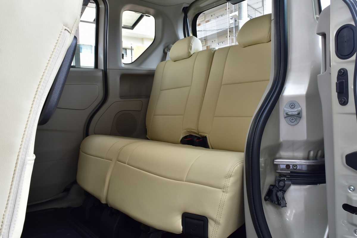 ベンチシート 前席シートが完全には独立しておらず、長椅子状につながって見える構造になっています。