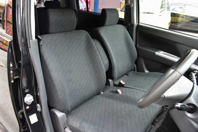 ベンチシート 前席シートが完全には独立しておらず、長椅子状につながって見える構造になっています。