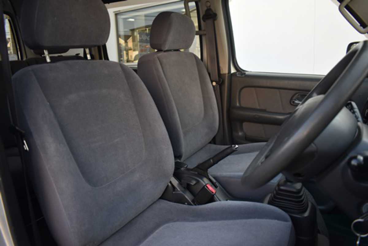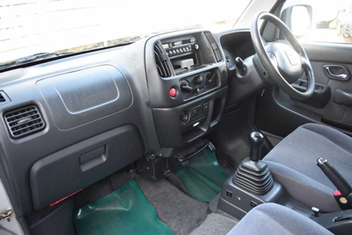 ベンチシート 前席シートが完全には独立しておらず、長椅子状につながって見える構造になっています。