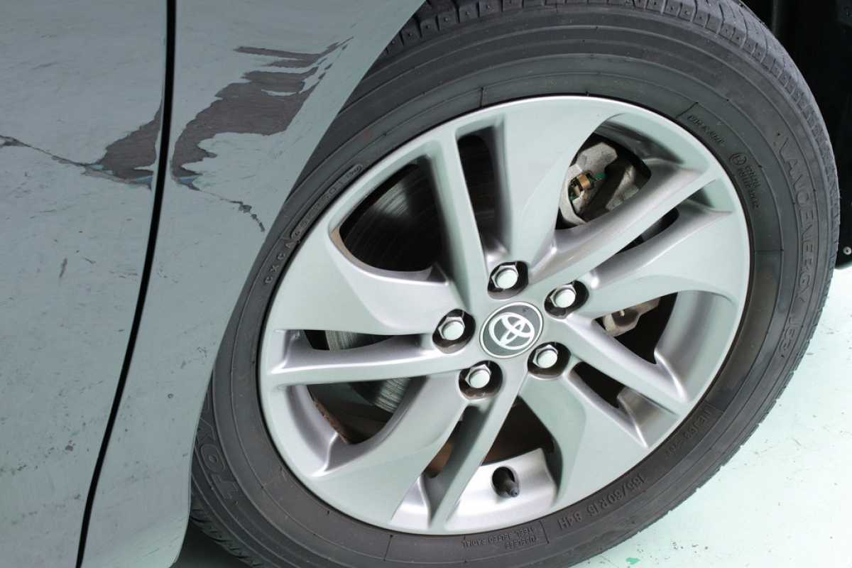 純正アルミ メーカーで販売しているアルミホイールが装着されています。