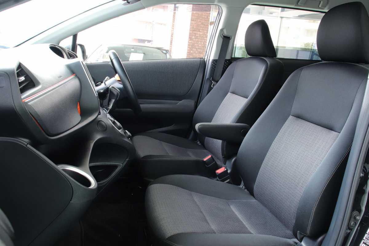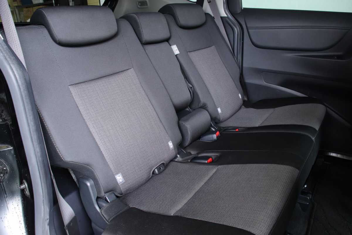 ベンチシート 前席シートが完全には独立しておらず、長椅子状につながって見える構造になっています。